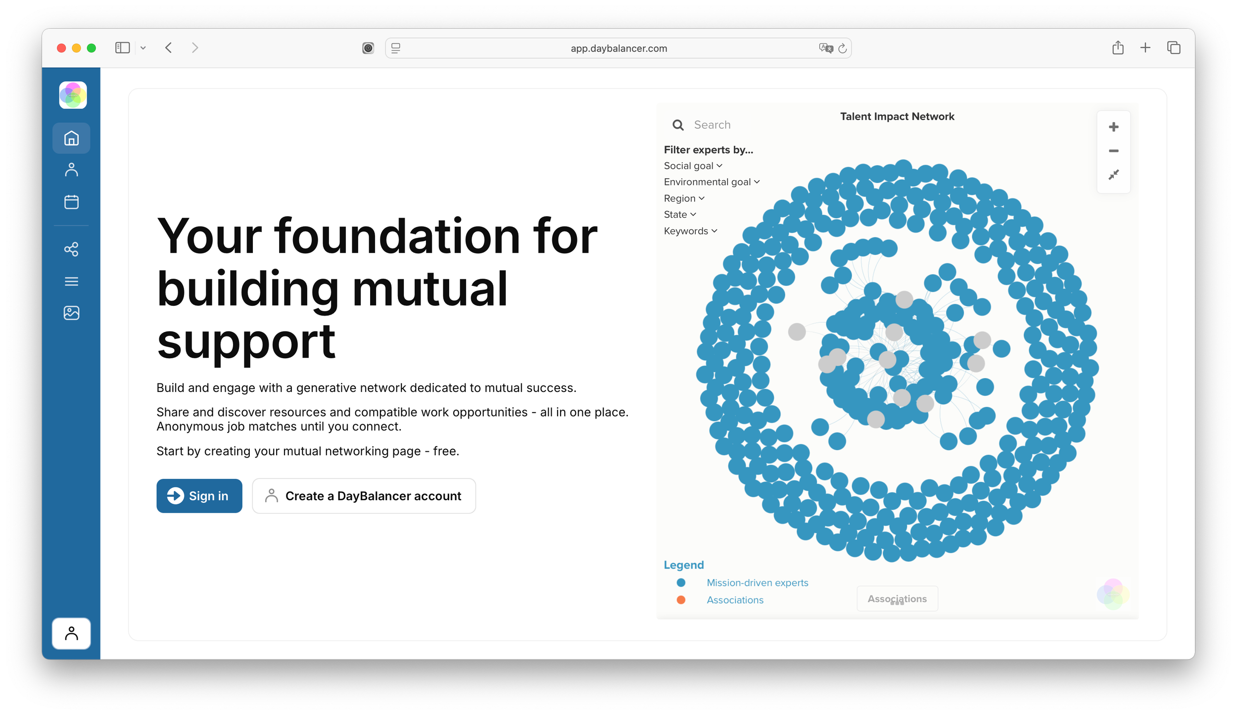 DayBalancer reveals hidden opportunities for work and collaboration within networks of people you trust. Gain instant access to people dedicated to increasing awareness and agency to practice purpose, wellness, and local mutual support. Start by exploring your “ikigai” as you find balance in 5 dimensions through cooperation over competition.