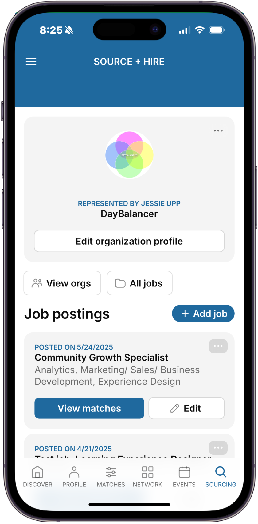 Organizational leaders: Source values-aligned talent for your team, track member career advancement in your community, and create measurable event outcomes.